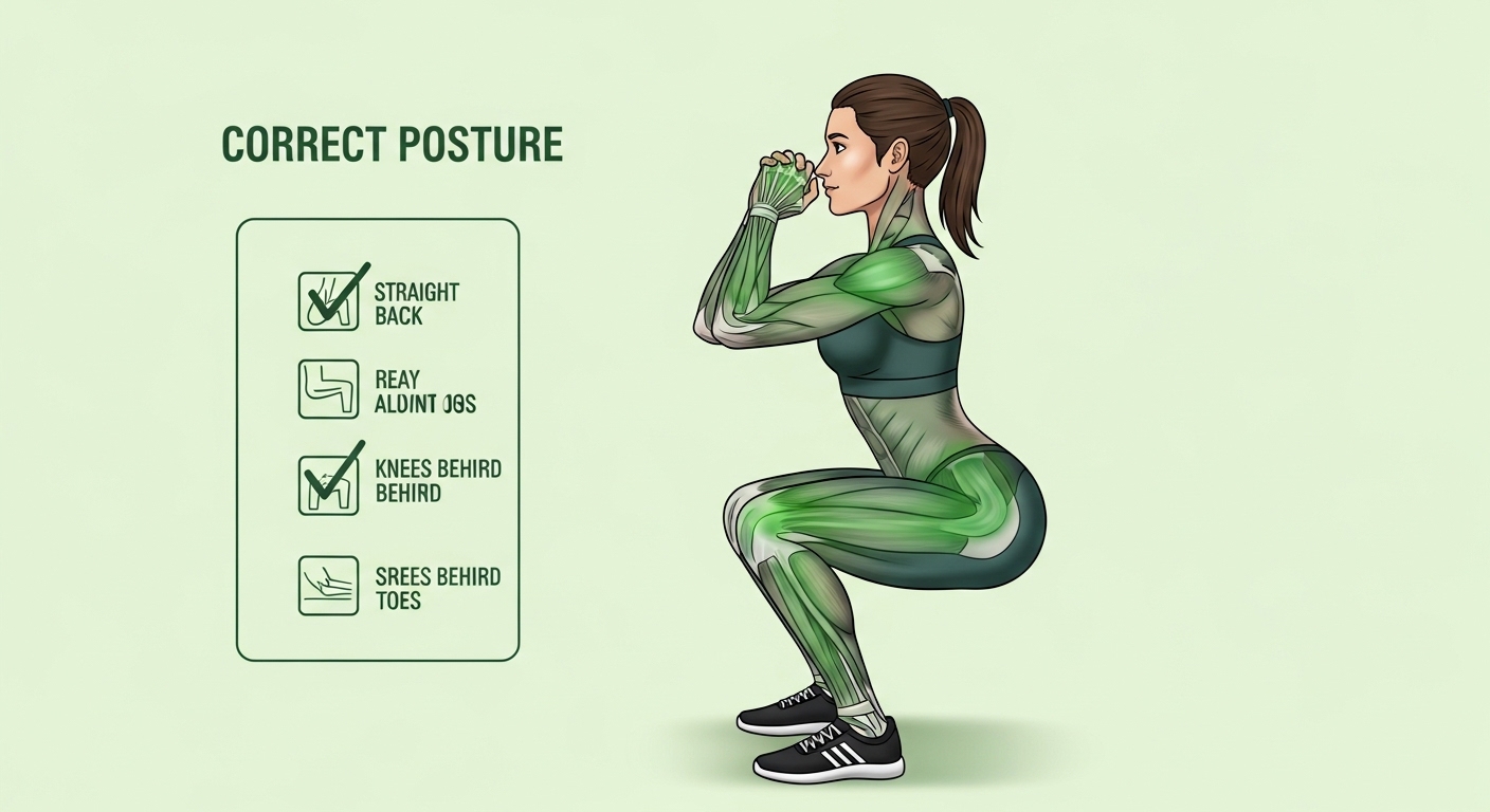 | 스쿼트 (Squat) | 엉덩이를 뒤로 빼며 의자에 앉듯이 내려갑니다. 무릎이 발끝보다 나가지 않도록 주의하세요. | 의자 앞에 서서 앉는 연습을 먼저 해보세요. |